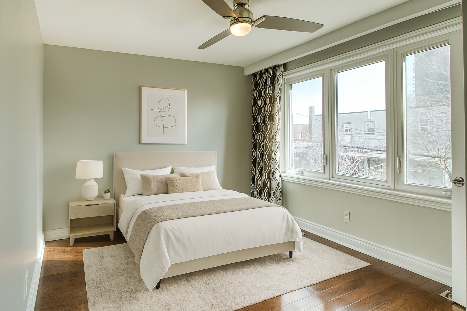 The second bedroom is impressively spacious, large enough to function as a primary suite, and comes with its own walk-in closet. With hardwood floors and great natural light. The third bedroom is bright and practical, featuring a window for natural light, a ceiling fan for comfort, and a dedicated closet for easy storage, perfect as a child’s room, guest room, or home office.