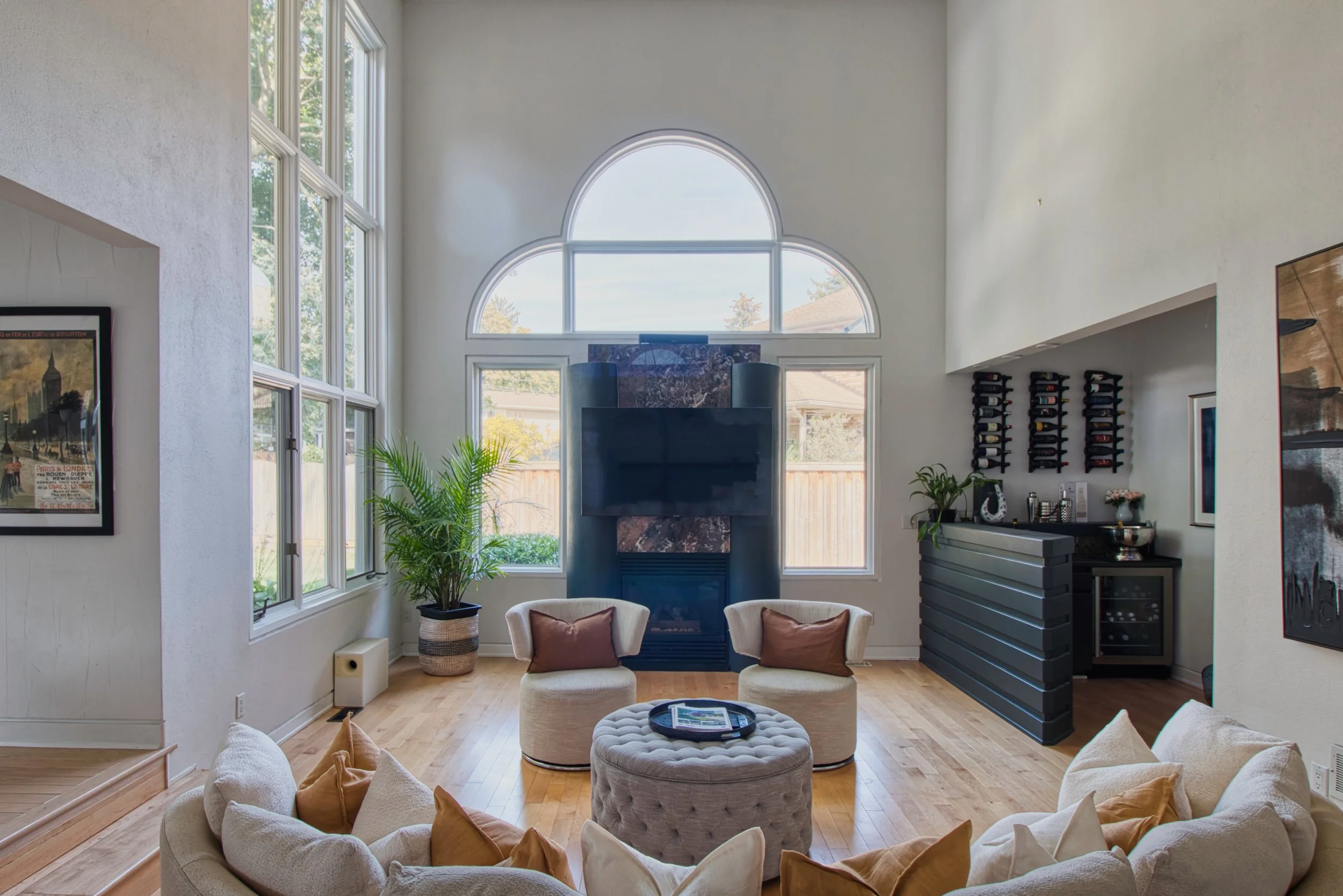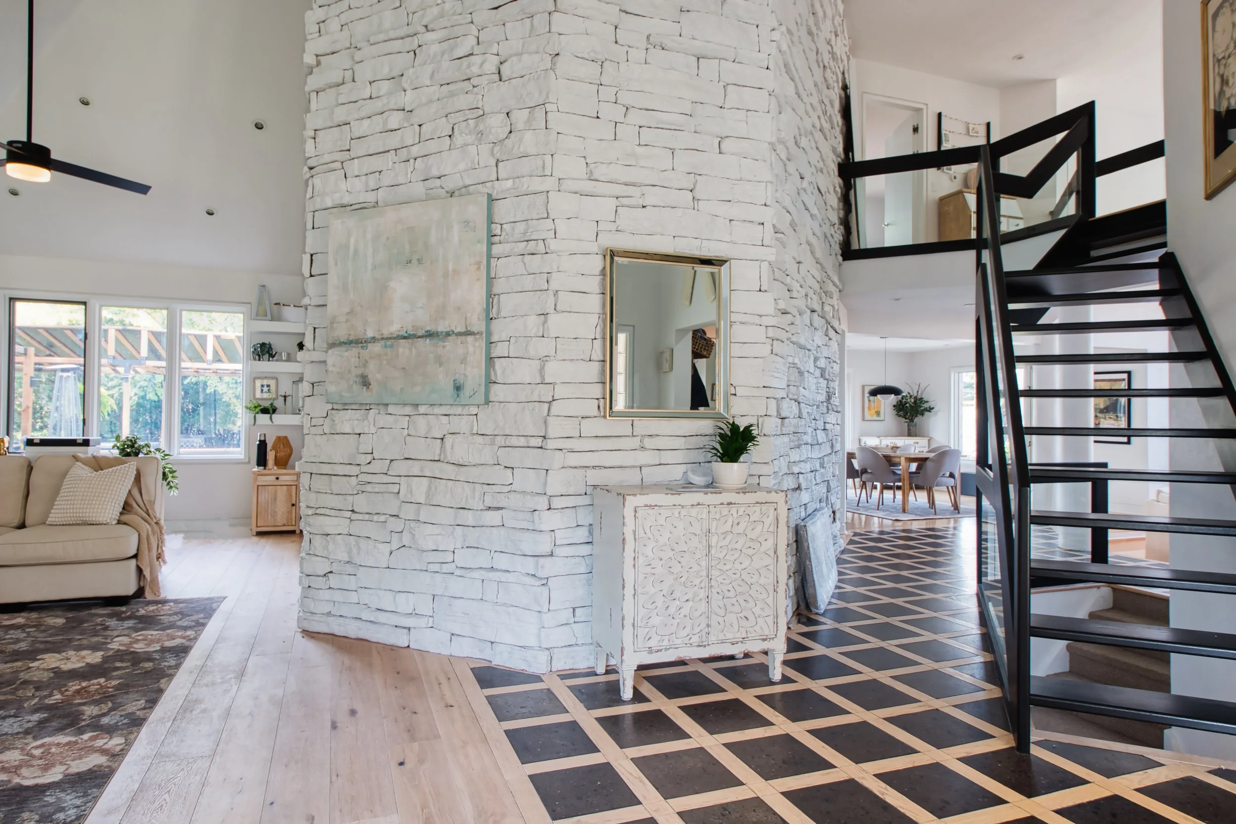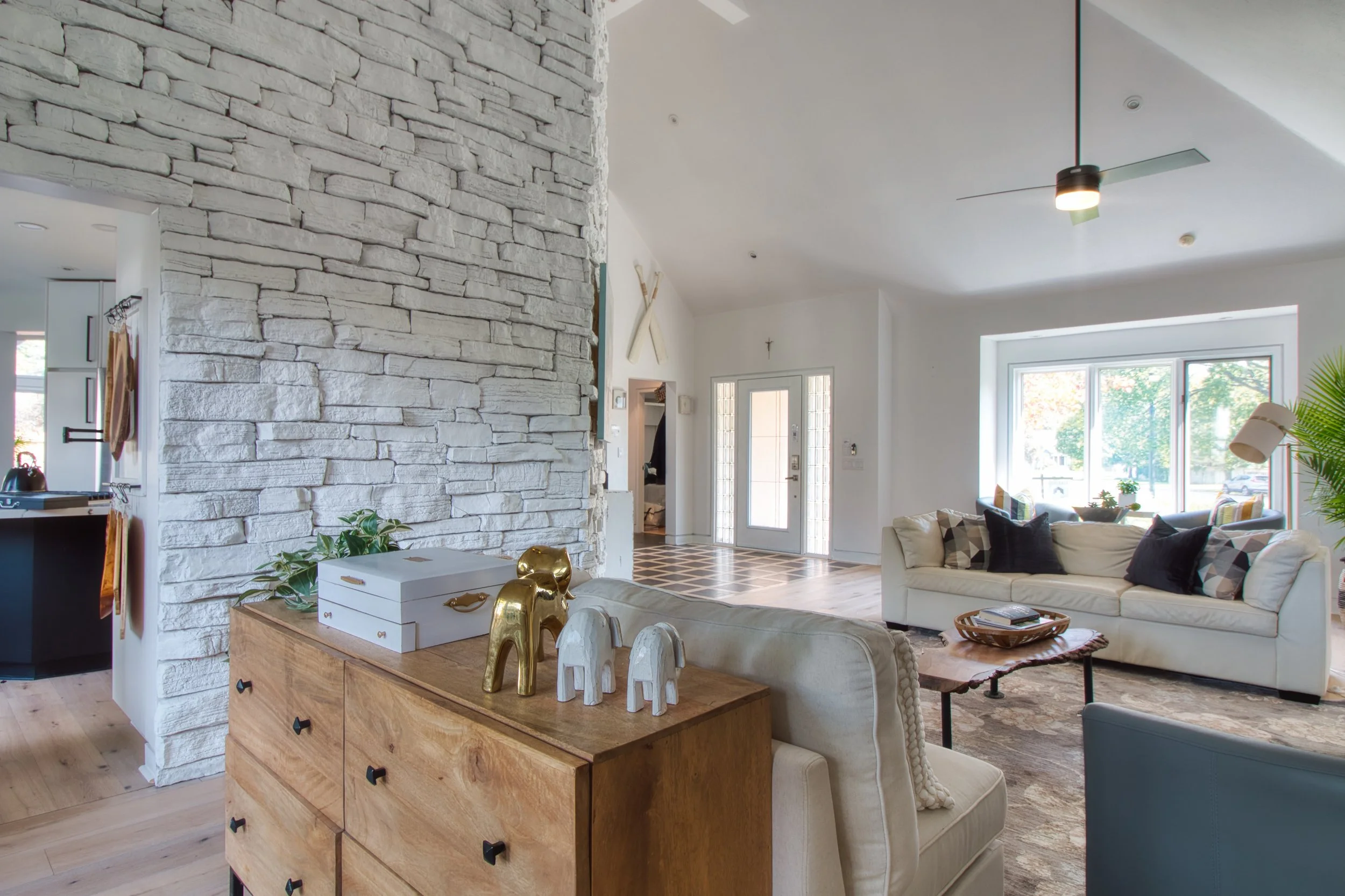 As you step into this home you are immediately uplifted with a sense of warmth and welcoming as you enter the expansive living room with vaulted ceilings and a stone veneer statement wall that brings a sense of timelessness to this modern home.